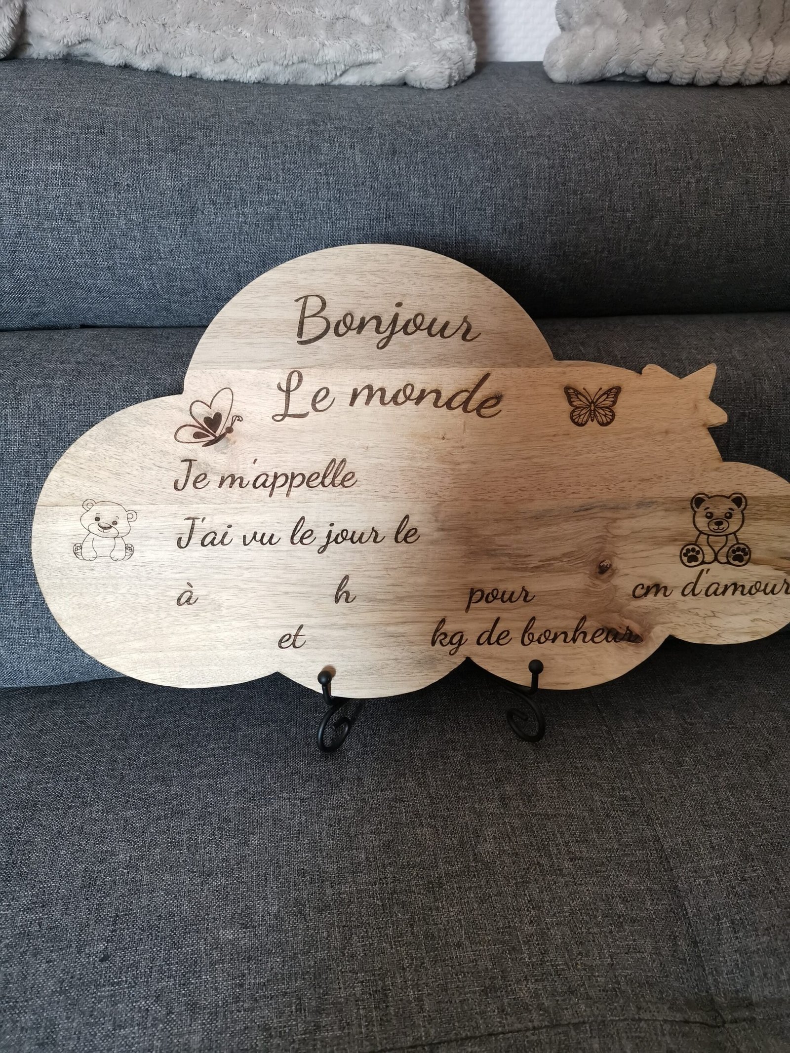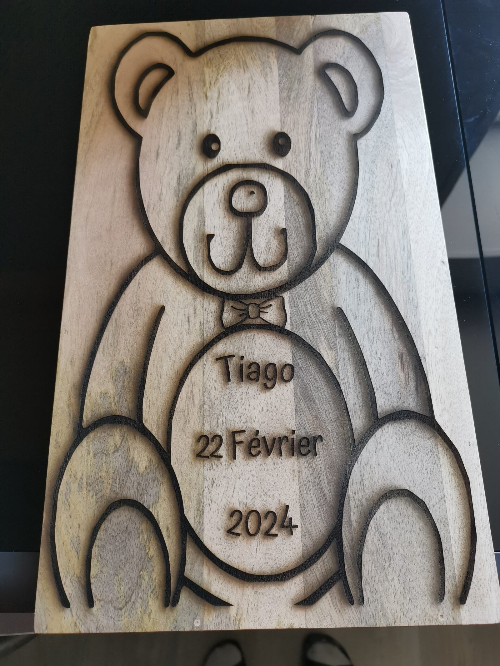 Une magnifique plaque en bois de Manguier à offrir à l’occasion d’une naissance. De belle dimension, 39 cm x 23 cm x 8 mm d’épaisseur, il permettra de conserver tous les premiers éléments de la vie de bébé : Naturel où une couche d’huile de Lin.